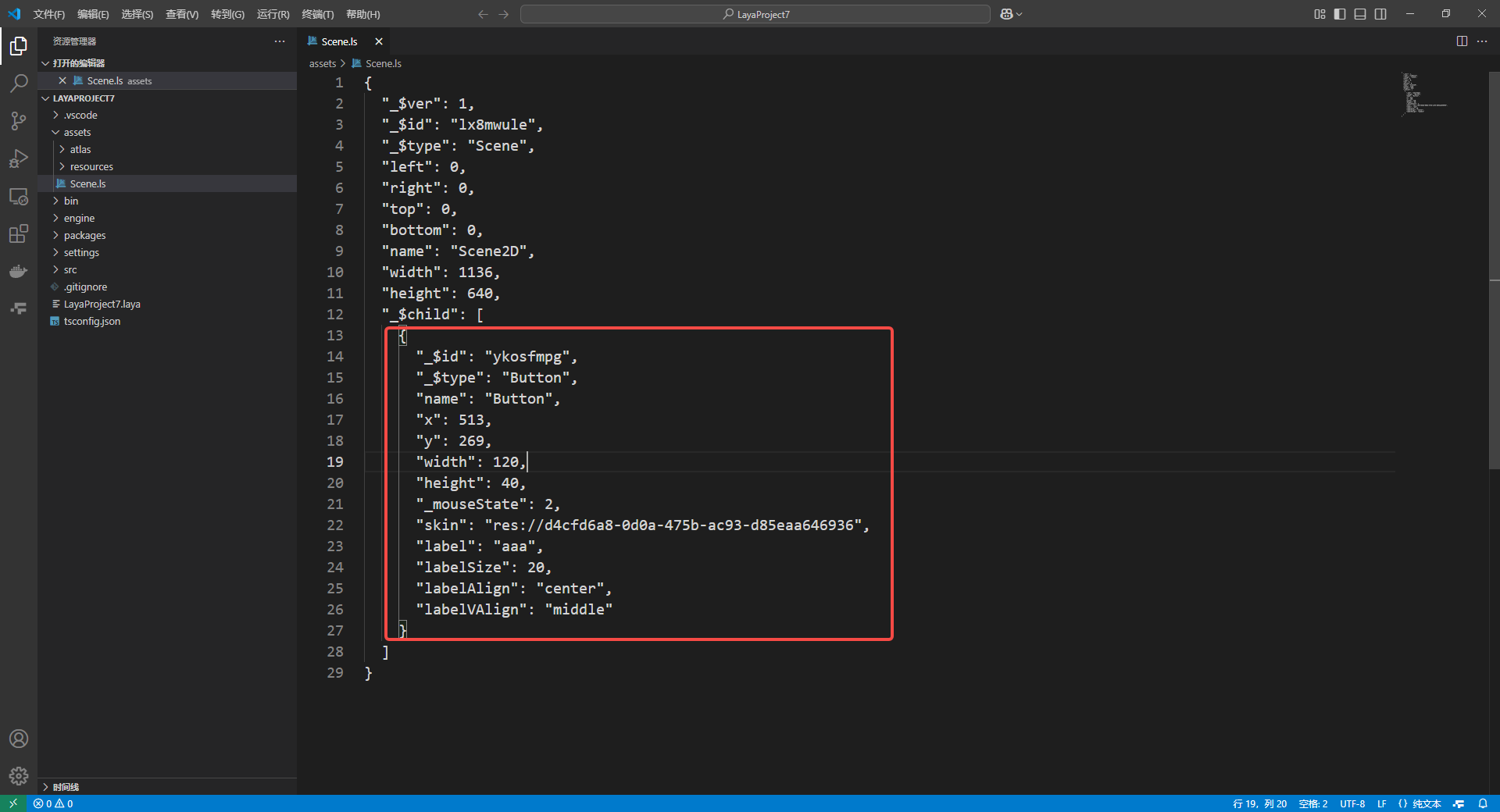 您可以在代码编辑器中打开场景文件,看到对应的数据。
