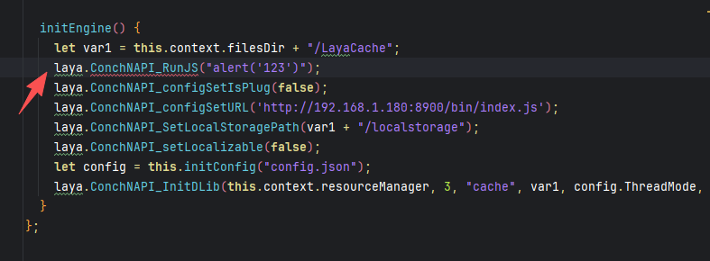 在文件中能进入进入arkTsFunc,但是laya.ConchNAPI_RunJS执行不了,alert出不来,调用全局函数也不行,用chrome确认全局函数可调用。